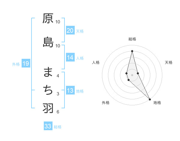 原島 まち羽さんの総格は33画の4点!