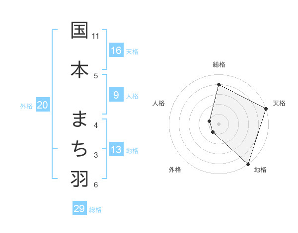 国本 まち羽さんを姓名の画数から五運を鑑定