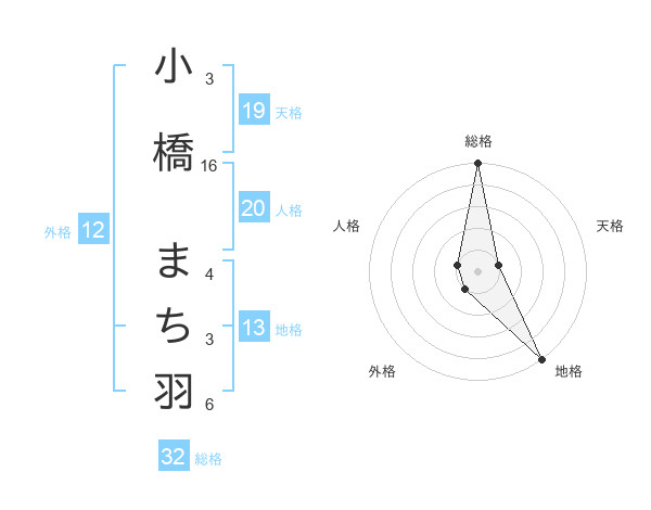 小橋 まち羽さんを姓名の画数から五運を鑑定