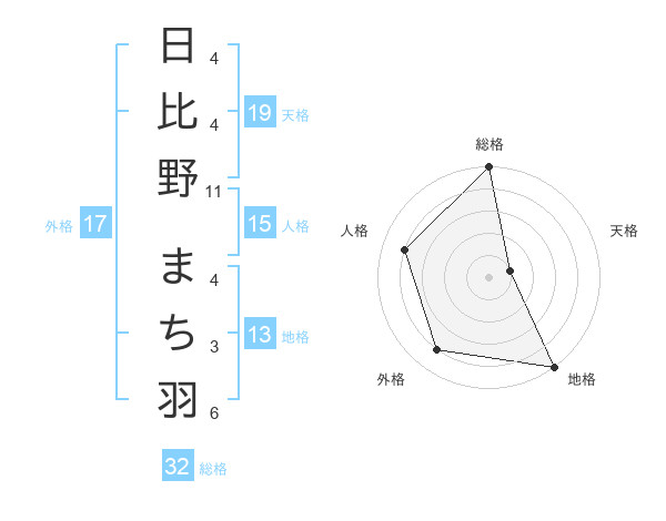 日比野 まち羽さんの外格は17画の4点!