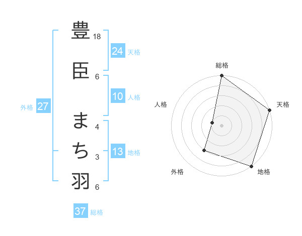 豊臣 まち羽さんを姓名の画数から五運を鑑定