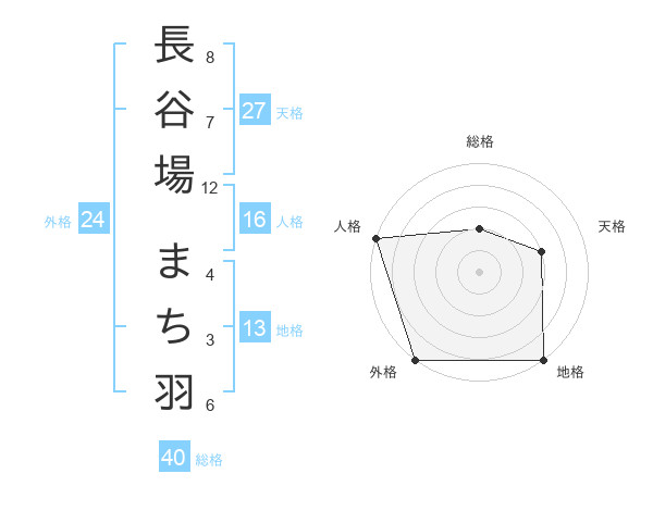 長谷場 まち羽さんの外格は24画の5点!
