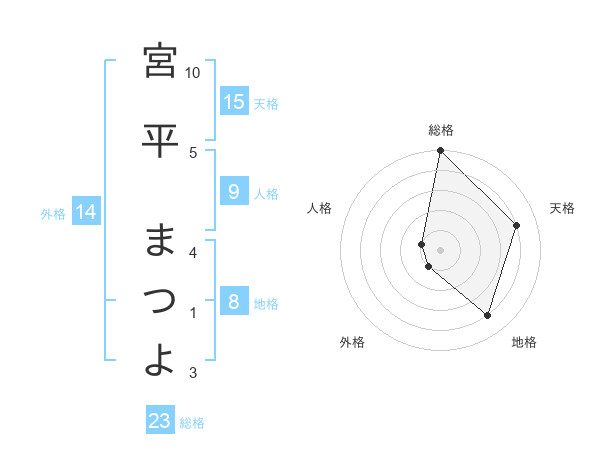 宮平 まつよさんの総格は23画の5点!