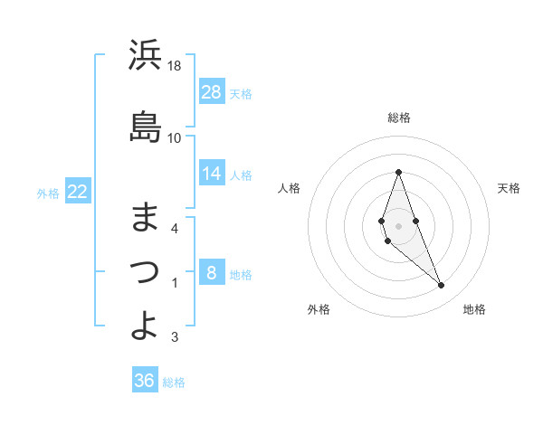 浜島 まつよさんを姓名の画数から五運を鑑定