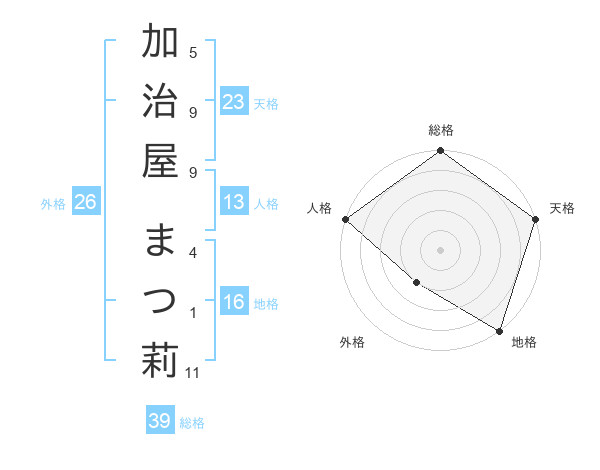 加治屋 まつ莉さんの総格は39画の5点