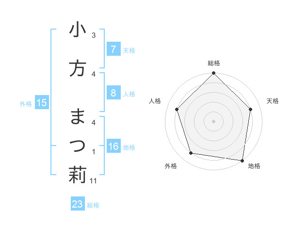 小方 まつ莉さんの総格は23画の5点