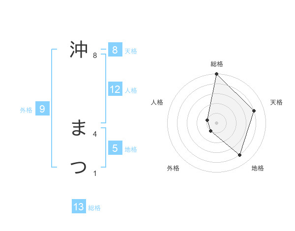 沖 まつさんの総格は13画の5点!