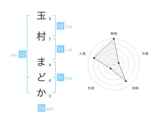 玉村 まどかさんを姓名の画数から五運を鑑定