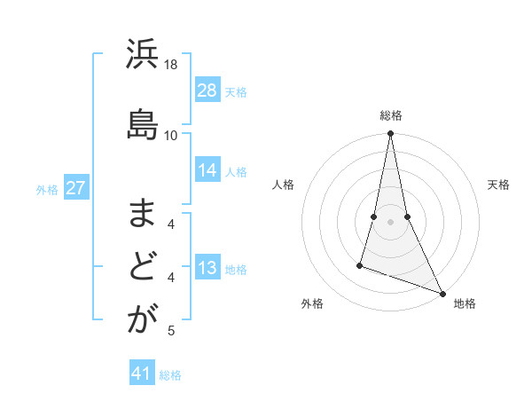 浜島 まどがさんの総格は41画の5点