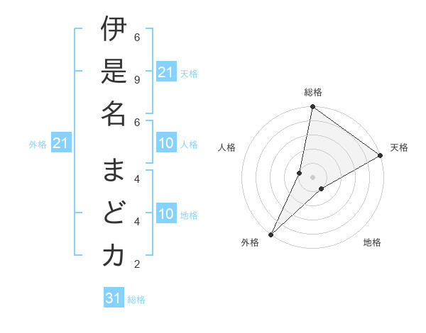 伊是名 まどカさんを姓名の画数から五運を鑑定