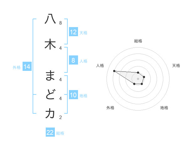 八木 まどカさんの総格は22画の1点!