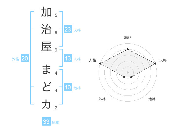 加治屋 まどカさんを姓名の画数から五運を鑑定