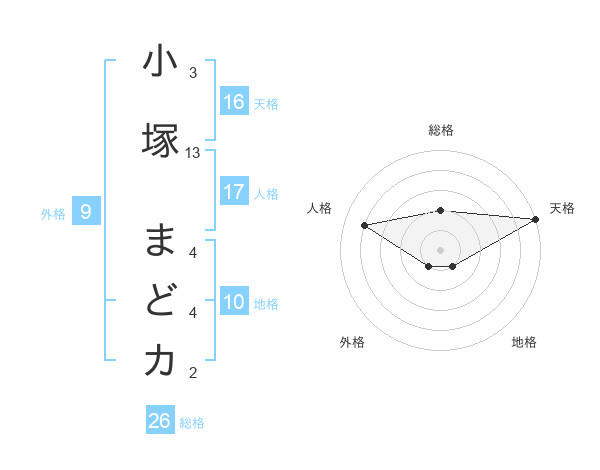 小塚 まどカさんを姓名の画数から五運を鑑定