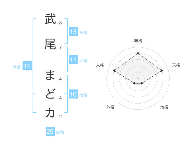武尾 まどカさんを姓名の画数から五運を鑑定