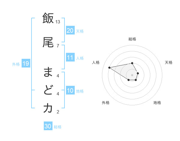 飯尾 まどカさんを姓名の画数から五運を鑑定