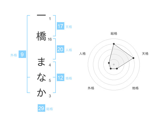 一橋 まなかさんの地格は12画の1点!