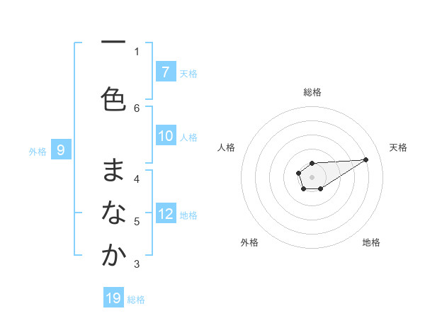 一色 まなかさんの総格は19画の1点!
