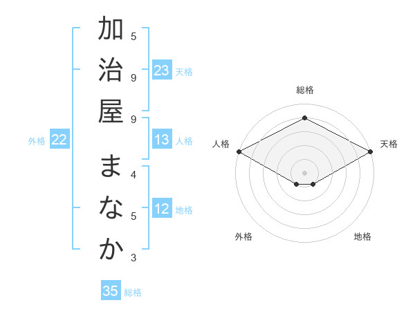加治屋 まなかさんを姓名の画数から五運を鑑定