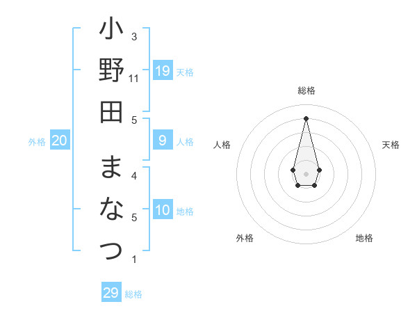 小野田 まなつさんを姓名の画数から五運を鑑定
