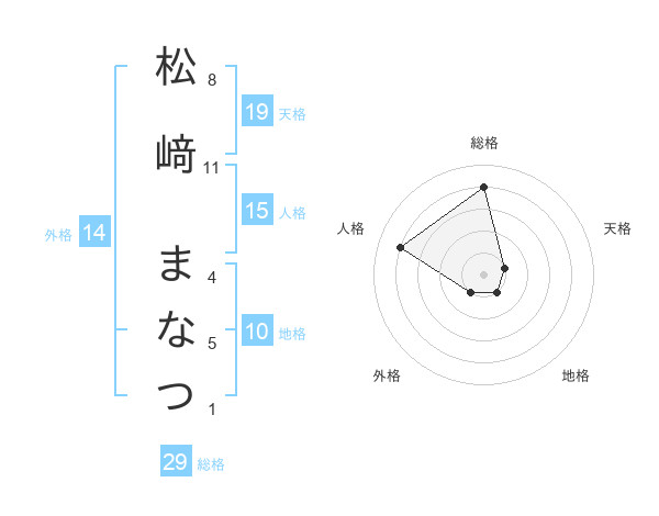 松﨑 まなつさんの総格は29画の4点!