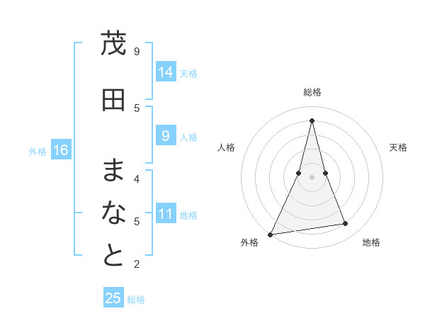 茂田 まなとさんの外格は16画の5点!