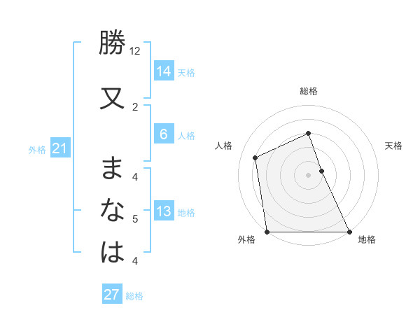 勝又 まなはさんの外格は21画の5点!