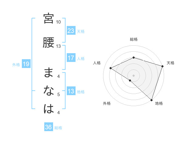 宮腰 まなはさんを姓名の画数から五運を鑑定