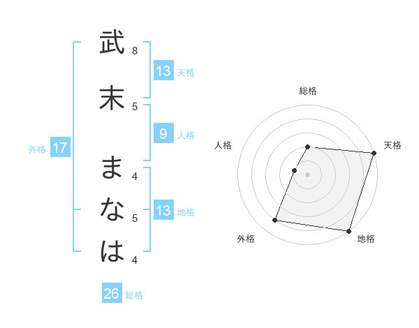武末 まなはさんの天格は13画の5点