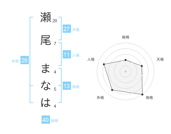 瀬尾 まなはさんを姓名の画数から五運を鑑定