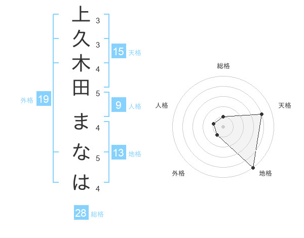 上久木田 まなはさんの天格は15画の4点!