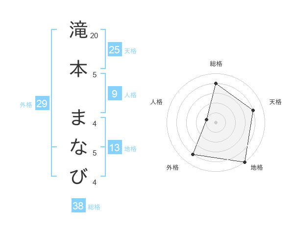 滝本 まなびさんの地格は13画の5点!