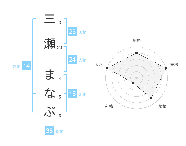 三瀬 まなぶさんの総格は38画の4点!