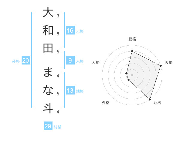 大和田 まな斗さんを姓名の画数から五運を鑑定