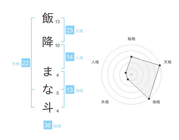 飯降 まな斗さんの地格は13画の5点!