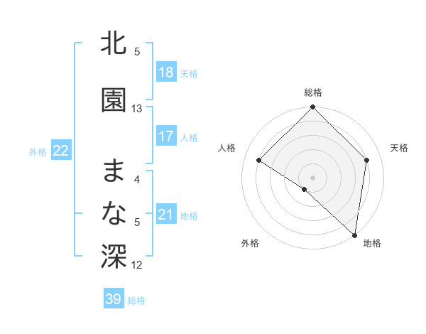 北園 まな深さんの総格は39画の5点!