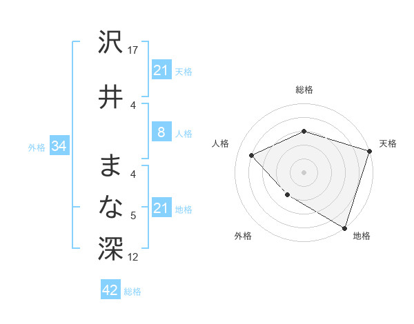 沢井 まな深さんを姓名の画数から五運を鑑定