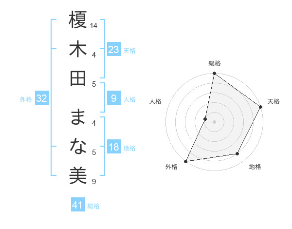 榎木田 まな美さんの天格は23画の5点!