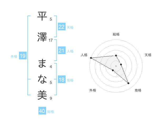 平澤 まな美さんを姓名の画数から五運を鑑定