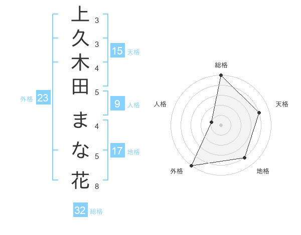上久木田 まな花さんの外格は23画の5点