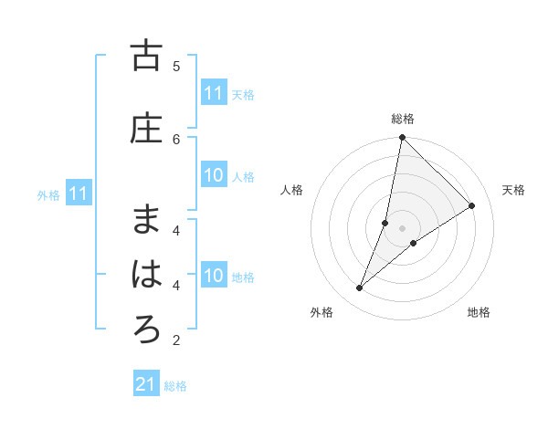 古庄 まはろさんの天格は11画の4点!