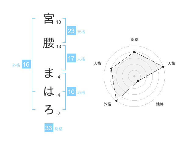 宮腰 まはろさんの総格は33画の4点!