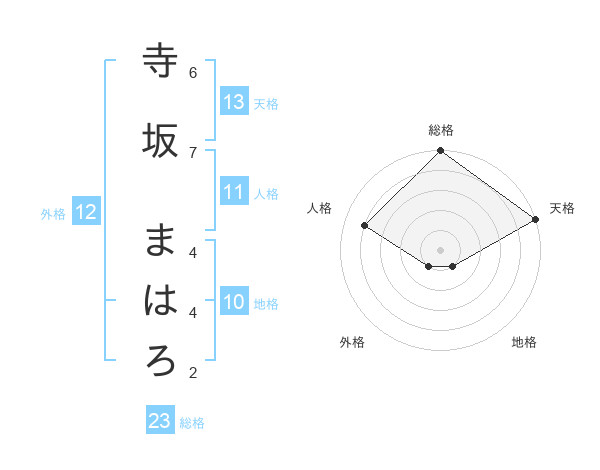 寺坂 まはろさんを姓名の画数から五運を鑑定