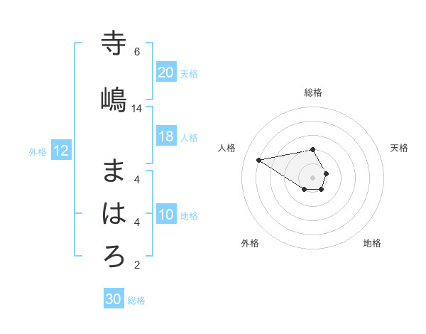 寺嶋 まはろさんの総格は30画の2点!