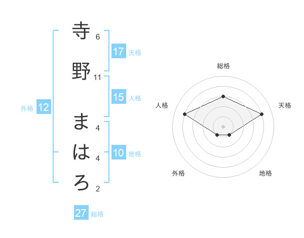 寺野 まはろさんの天格は17画の4点!