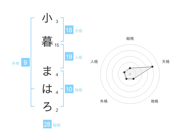 小暮 まはろさんの天格は18画の4点!