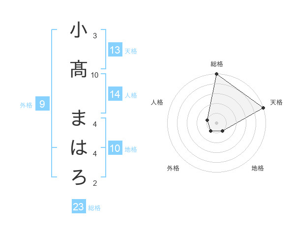 小髙 まはろさんを姓名の画数から五運を鑑定