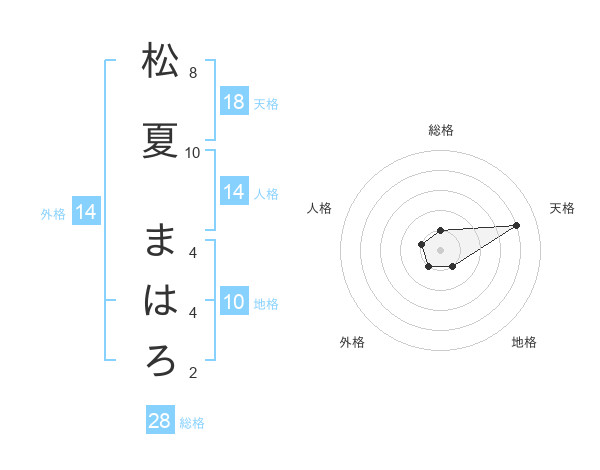 松夏 まはろさんの天格は18画の4点!