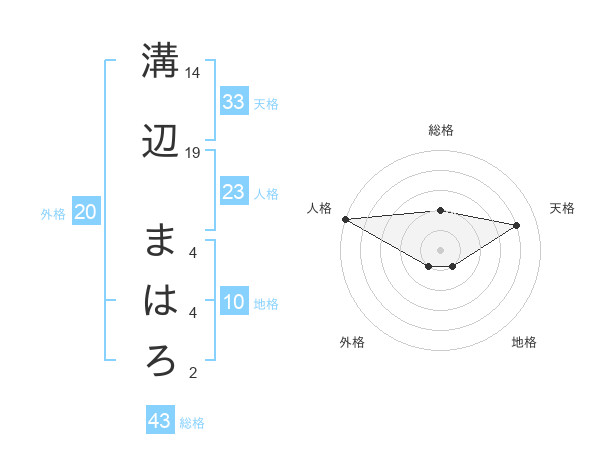 溝辺 まはろさんの総格は43画の2点!