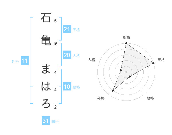 石亀 まはろさんを姓名の画数から五運を鑑定