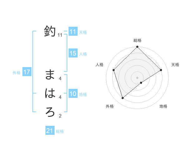 釣 まはろさんの総格は21画の5点!